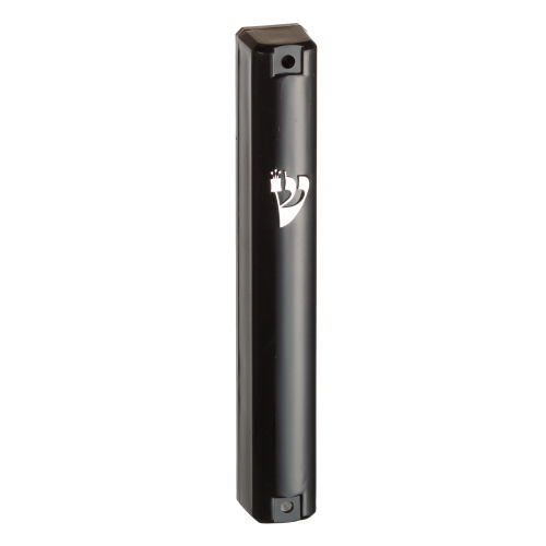 Black plastic mezuzah 7 cm with "Shin" silver with rubber stopper